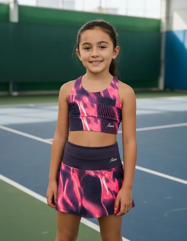 Conjunto Esportivo infantil Shorts-Saia + Top Rose