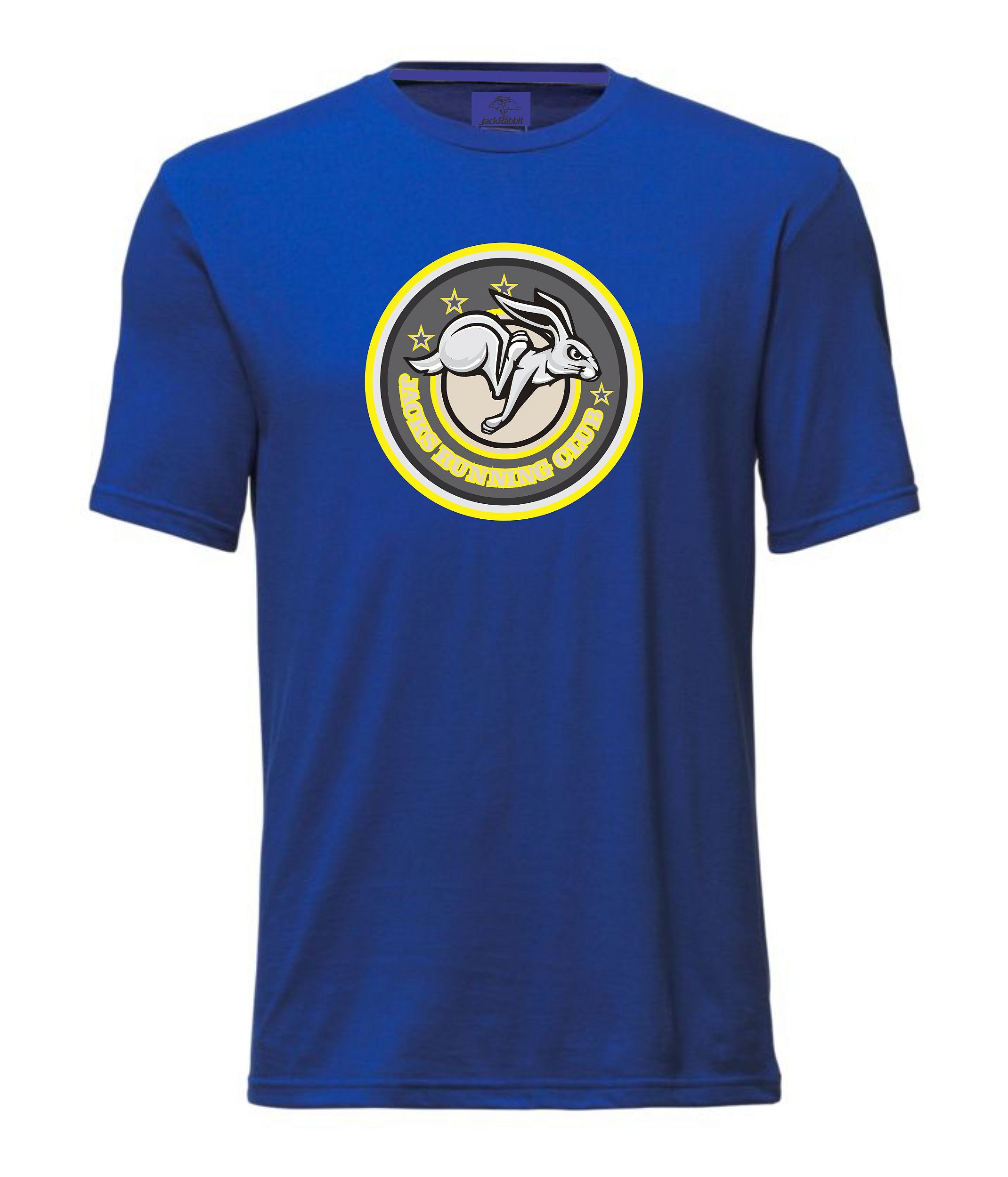 A Camiseta de Corrida Infantil Manga Curta JackRabbit Running Club com tecnologia Dri-V é feita em tecido leve que absorve o suor para ajudar a manter você fresco, seco e confortável.